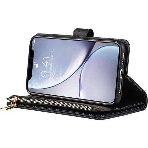 Eastwave アイフォンfor iPhone XR ケース for iPhoneXR 縄掛けケース 手帳型 財布型 ICカード コインポケット ストラップ付き カード 収納 小銭入れ ファスナーポケット付き PUレザー 6色 ブラック 1038
