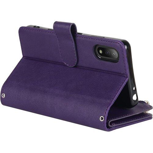 Xperia Ace II ケース 手帳型 ショルダー エクスペリアACE II スマホケース Xperia Ace ll ケース 携帯カバー ace2 ケース 手帳型 適用 CASE iCoverCase ストラップホール付き カード収納 バッグ マグネット 留め具 肩がけ 首掛け 斜め掛け カードケース ファスナー型 ストラップ付き カバー ショルダーケース クロスボディケース カード入れ スマホケース 携帯カバー パープル 1092
