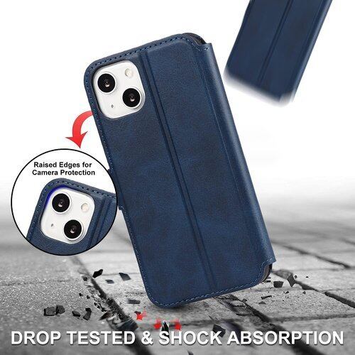 QLTYPRI iPhone 13 6.1 inch ケース 手帳型 本革レザー カード収納 横置き Qi充電対応 耐衝撃 全面保護 シンプル 人気 おしゃれ 財布型 カバー - ブルー 1167
