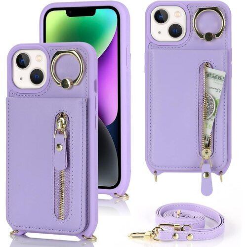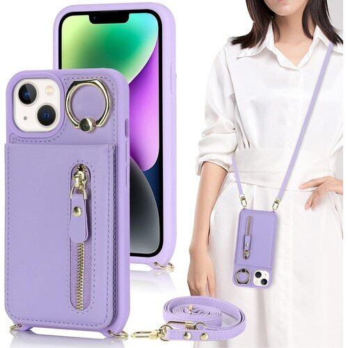 iPhone 14 / 13 通用 ケース ショルダー one13 ケース アイフォン14 アイフォン13 スマホケース アイフォン 14 13 ケース 手帳ケース アイホン 14 13 ケース CASE カバー 適用 iCoverCase リング カードケース カード収納 スナップ式 横置き スタント 肩がけ 首掛け 斜め掛け ファスナー ストラップ付き ショルダーケース カード入れ カバー スマホケース 携帯カバー パープル 1988