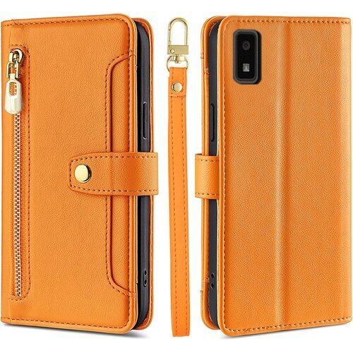 AQUOS wish3 ケース 手帳型 ショルダー 適用 SH-53D 手帳 ストラップ 長+短 2本 アクオス ウィッシュ3 斜め掛け スマホケース A302SH A303SH 手帳ケース SH-M25 ポシェット 携帯ケース 肩がけ BonwFzin ストラップホール付き カード収納 バッグ マグネット スナップ 首掛け ファスナー ストラップ付き スタンド カード入れ オレンジ 2037