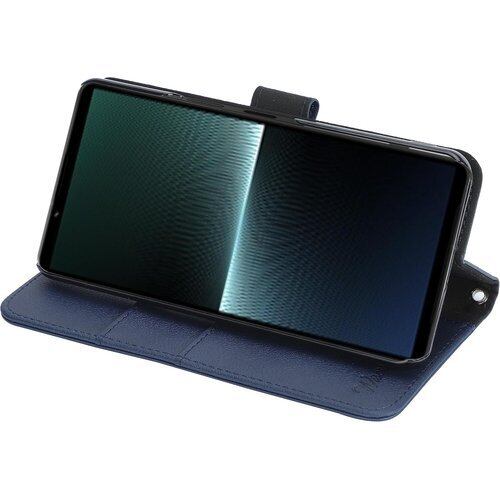 wisers Xperia 1 V SO-51D SOG10 Gaming Edition 対応 手帳型スマホケース ダークブルー 牛革調PUレザー カードホルダー/スタンド機能付き ストラップ 2種付き ハンドストラップ/ネックストラップ 2073