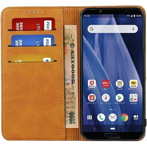 aquos sense3 ケース 手帳型 sh-m12 sh-02m shv45 SIMフリー ケース 手帳型 カバー 手帳型 aquos sense3 basicケース 907SH SHV48 ケース 907SH SHV48 カバー sense3 lite ケース sh-rm12 ケース 手帳型 android one s7 スマホケース カードスロット、キックスタンド レザー ライトブラウン 2193