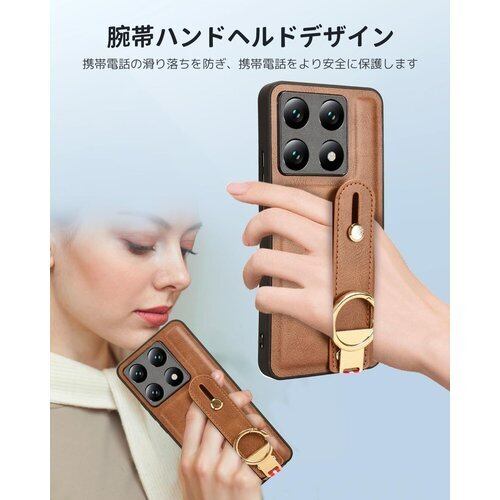 Xiaomi 14T 用 ケース YAJOJO 手首とキックスタンド機能 肩掛け ストラップ付き 耐衝撃 レンズ保護 合皮レザーー + TPUケース 革の質感 画面レンズ保護 落下防止 携帯カバー 指紋防止 Xiaomi 14T 対応 ブラウン 2613