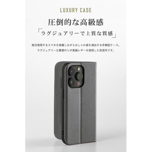 【安心の日本ブランド】【上品で高級感のあるシボ革調PUレザー手帳型ケース】毎日使用するスマホを保護しながらおしゃれ感を演出できるスマホケースです。ラグジュアリーな質感のシボ革調レザーを使用し、上質で満足感の高い仕上がり。手入れしなくても汚れにくく、手触りも良いため扱いやすさ抜群です。