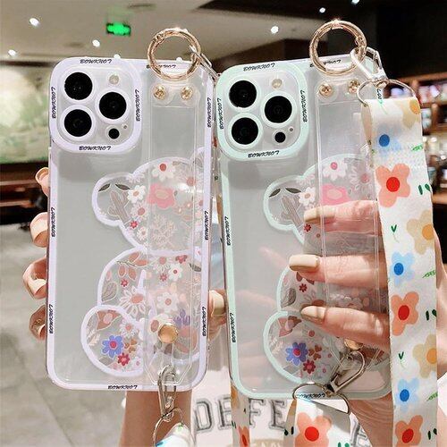 Arpe ベアブリック カウズ スマホケース iPhone 11 用 ケース 透明な 首かけストラップ 携帯ストラップ リストレット スタンド機能 キックスタンド 透明な カウズ アイフォン 11 用 ケース 6.1インチ シリコーン保護カバー iPhoneケース カラー 白 3158