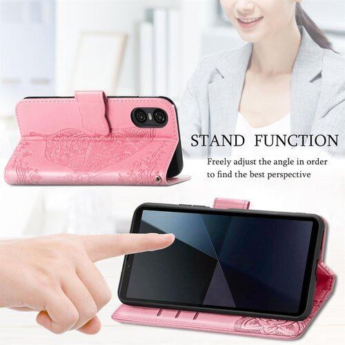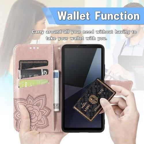 Xperia 10 VI ケース 手帳型 ローズゴールド au SO-52E ケース 財布型 カード収納 かわいい 蝶々 フラワー柄 シンプル おしゃれ ドコモ SOG14 手帳型ケース 良質 革 レザー マグネット式 SoftBank A402SO 携帯ケース 横置きスタンド機能付き エクスぺリア10VI SO52E スマートフォンケース 耐衝撃 ストラップホール付 画面保護 3310