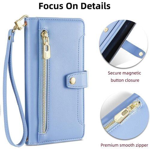 適用 AQUOS R9 pro SH-54E SH-M30 ケース 手帳型 アクオス R9 プロ ショルダー ポシェット aquosr9pro スマホケース ストラップ 長+短 2本 アクオスR9プロ 手帳ケース SH-54Eケース BonwFzin カード収納 バッグ マグネット スナップ 肩がけ 首掛け 斜め掛け ファスナー ストラップ付き スタンド カード入れ 浅い藍 ライトブルー 3599