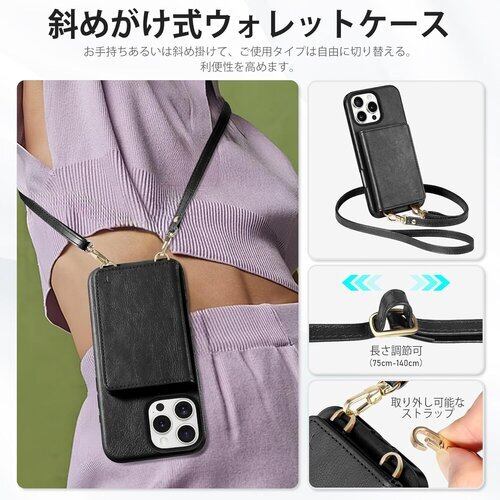 【ショルダーストラップ付き】スマホケースと同色のショルダーストラップ付きます。ショルダーストラップの長さは75CMから140CMまで調節できます。斜め掛けや肩掛けが可能、シーンに応じて使用できます。ケースはスマホのサイズに基づいたデザインで、手にしっかりフィットするグリップ感をもたらします。ケースを装着したまま、電源ボタン、音量ボタン、充電口、カメラなどに影響しません。