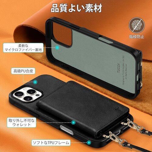 TUCCH iPhone 16 Pro Max 対応 ケース 背面 手帳型 ショルダー ストラップ付き アイフォーン16プロマックスカバー PUレザー RFIDブロッキング 6つポケット 取り外し不可 財布型 肩掛け 斜め掛け TPU素材 衝撃吸収 あいふぉん16プロマックス携帯ケース 2024年発売 6.9インチ 5G アイフォン16プロマックス対応 グラファイト 3661