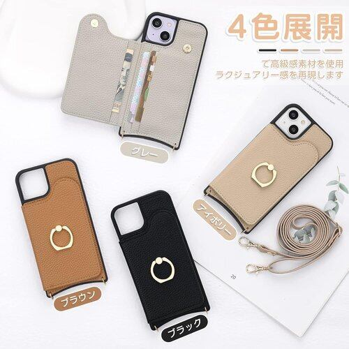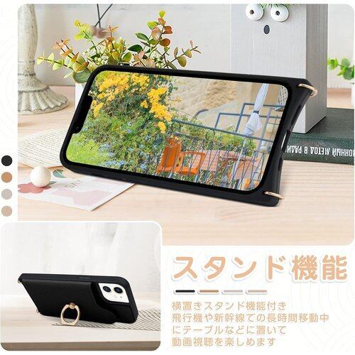 Acclink iPhone 12 iPhone 12 き iPhone12 スマホケース 肩掛け 首かけ 斜めがけ ショルダー 女性 アイフォン12Pro ケース カードポケット 高級PUレザー お洒落 上品 あいふぉん12 携帯ケース 軽量 薄型 リング付き iPhone 12Pro ケース 財布型 iPhone 12 ケース 全面保護 財布付 横置き可 便利 多機能 耐久性 縄掛け 落下防止 防水 耐衝撃 防指紋 ブラック 23
