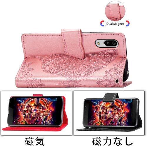 対応AQUOS sense3 / sense3 lite / sense3 basic/Android One S7 SH-02M / SHV45 / SH-RM12 ケース 手帳型 ノートブック型携帯保護カバー多機能携帯ホルスター財布携帯ホルダーバンプパターンテクスチャ耐久性摩擦耐性携帯ケース男性と女性に適した多色オプション バタフライピンク 428