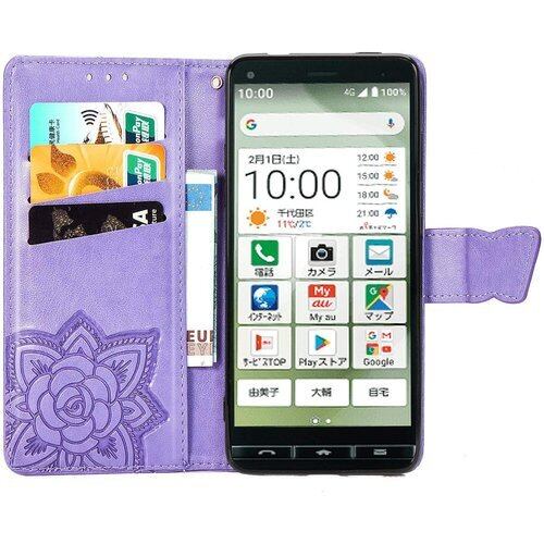 対応京セラ BASIO4 KYV47 BASIO 4 ベーシオ4 かんたんスマホ2 A001KC ケース 手帳型 ノートブック型携帯保護カバー多機能携帯ホルスター財布携帯ホルダーバンプパターンテクスチャ耐久性摩擦耐性携帯ケース男性と女性に適した多色オプション バタフライラベンダー 432