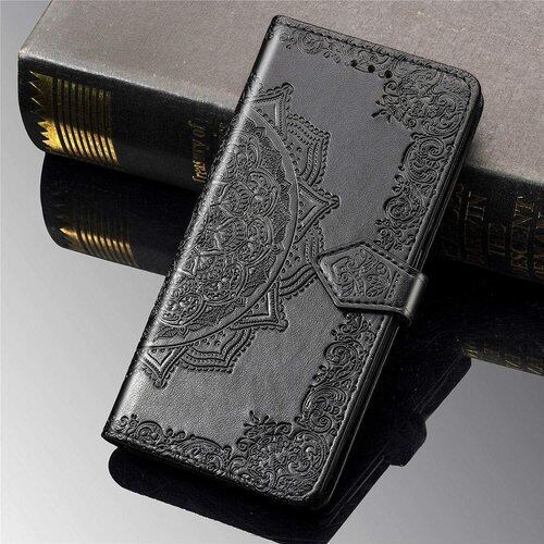 対応ソニー Xperia 10 II フィルム SO-41A SOV43 ケース 手帳型 ノートブック型携帯保護カバー多機能携帯ホルスター財布携帯ホルダーバンプパターンテクスチャ耐久性摩擦耐性携帯ケース男性と女性に適した多色オプション マンダラ黒 528