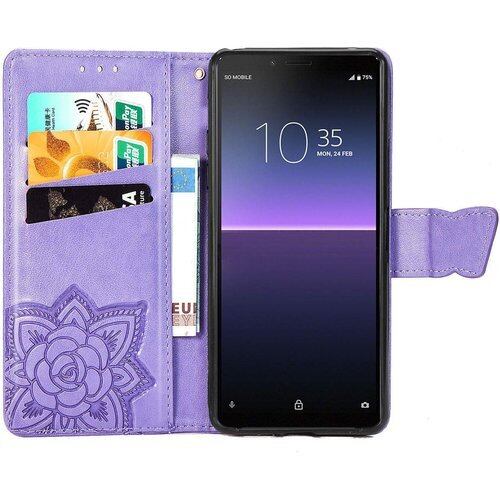 対応ソニー Xperia 10 II フィルム SO-41A SOV43 ケース 手帳型 ノートブック型携帯保護カバー多機能携帯ホルスター財布携帯ホルダーバンプパターンテクスチャ耐久性摩擦耐性携帯ケース男性と女性に適した多色オプション バタフライラベンダー 530