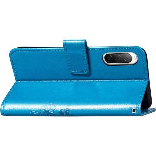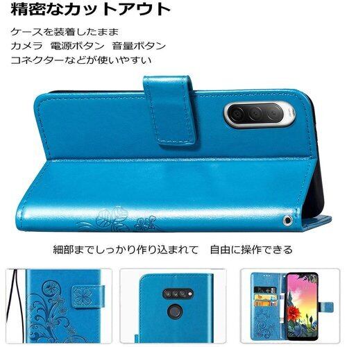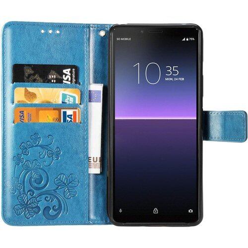 対応ソニー Xperia 10 II フィルム SO-41A SOV43 ケース 手帳型 ノートブック型携帯保護カバー多機能携帯ホルスター財布携帯ホルダーバンプパターンテクスチャ耐久性摩擦耐性携帯ケース男性と女性に適した多色オプション 四つ葉のクローバーブルー 531