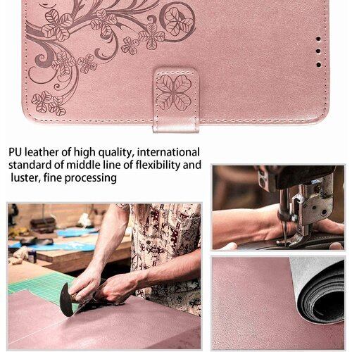 Galaxy A21 ケース シン フィット ギャラクシー SC-42A 純色 四つ葉のクローバーの印 PUレザー 上絵 手帳型 カード入れ SCV49 財布カバー スタンド機能 耐衝撃 防塵 耐久性 装着やすい 吸着の機能 キラキラ 胡蝶 ラインストーン デコ ギャラクシー A21 スマホカバー Galaxy A21 ローズゴールド 636