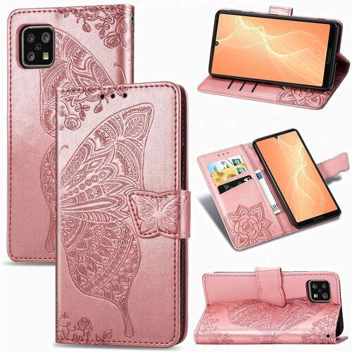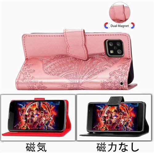対応AQUOS sense4 doo SH-41A sense5G SH-53A au SHG03 sense4 lite sense4 basic ケース 手帳型 ノートブック型携帯保護カバー多機能携帯ホルスター財布携帯ホルダーバンプパターンテクスチャ耐久性摩擦耐性携帯ケース男性と女性に適した多色オプション バタフライローズゴールド 646