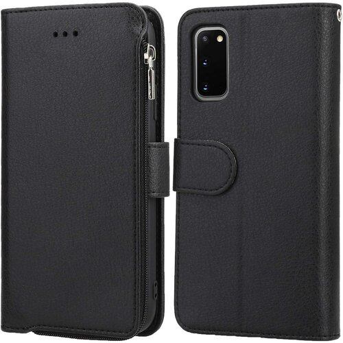 Eastwave サムスン ギャラクシー S20 Plus ケース for Samsung Galaxy S20plus SC-52A SCG02 ケース 手帳型 財布型 背面ICカード コインポケット ストラップ付き カード 収納 小銭入れ ファスナーポケット付き PUレザー 5色 ブラック 806