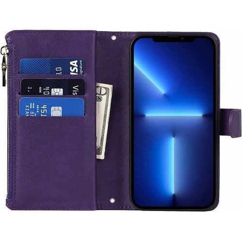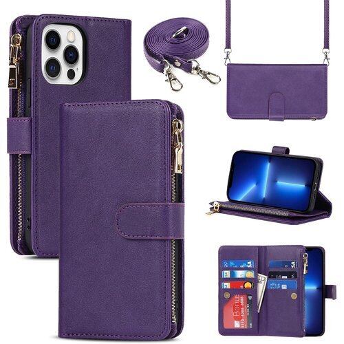 iPhone13 pro ケース 手帳型 ショルダー 13 プロ カバー アップル アイホン13プロ 携帯ケース 13プロ アイフォン13プロ スマホケース 手帳型 適用 case iCoverCase ストラップホール付き カード収納 バッグ マグネット 留め具 肩がけ 首掛け 斜め掛け カードケース ファスナー型 ストラップ付き カバー ショルダーケース クロスボディケース カード入れ スマホケース 携帯カバー パープル 1114
