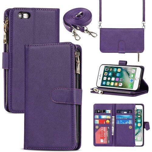 iPhone6 plus ケース / iPhone6s plus ケース 手帳型 ショルダー クロスボディ iPhone 6 plus iPhone 6s plus 手帳型 カバー iPhone6plus iPhone6splus 通用 アイフォン6plus アイフォン6splus ケース アイフォン 6plus 6splus アイフォン6プラス アイフォン6sプラス アイホン 6sプラス 6プラス 適用 case iCoverCase ストラップホール付き カード収納 バッグ マグネット 留め具 肩がけ 首掛け 斜め掛け カードケース ファスナー型 ストラップ付き カバー ショルダーケース クロスボディケース カード入れ スマホケース 携帯カバー パープル 1117
