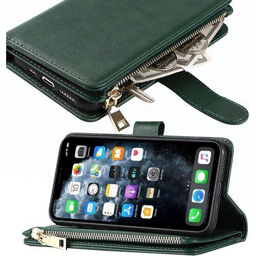 Galaxy A32 5G ケース 手帳型 ショルダー カバー A32 ケース A325Gケース SCG08 カバー スマホケース a32 ケース 手帳型 case 適用 iCoverCase ストラップホール付き カード収納 バッグ マグネット 留め具 肩がけ 首掛け 斜め掛け カードケース ファスナー型 ストラップ付き カバー ショルダーケース クロスボディケース カード入れ スマホケース 携帯カバー 深い緑 ダークグリーン 1152