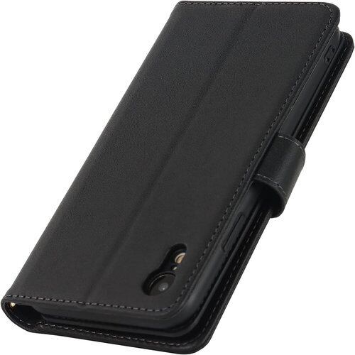 Pelanty 縄掛けケース for iPhone XR 手帳型ケース iPhoneXR 財布型カバー 手持ち縄掛け ICカードポケット お札入れ小銭入れ 大容量 収納ポケット ボタン磁気 合成皮革+TPUケース アイフォンXR ストラップ付き 携帯カバー スタンド機能(手縄付き-ブラック)