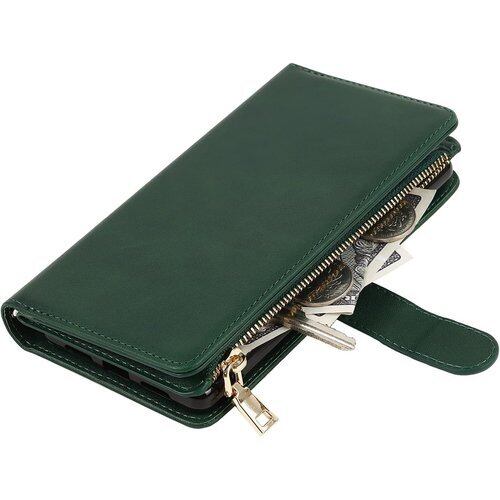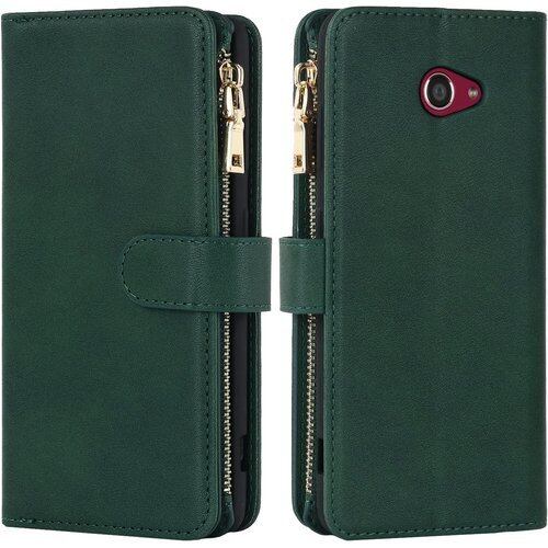 Eastwave かんたんスマホ2 A001KC ケース 京セラー Basio 4 KYV47 縄掛けケース 手帳型 Basio4 KYV 47 財布型 ICカード コインポケット ストラップ付き カード 収納 小銭入れ ファスナーポケット付き PUレザー 6色 グリーン 1544