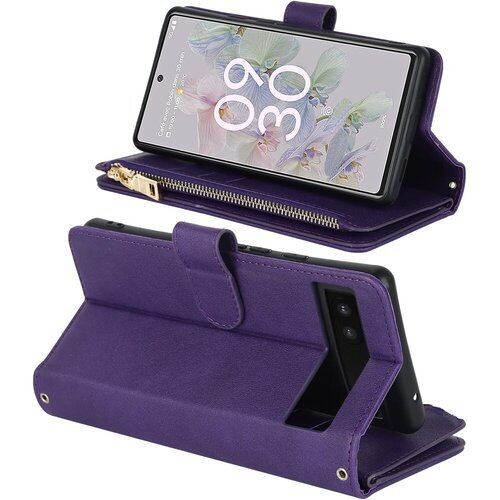 Google用 pixel 6A ケース 手帳型 ショ バー グーグル ピクセル6A カバー pixel6A スマホケース 手帳型 カバー pixel6Aケース 財布型 適用 case iCoverCase ストラップホール付き カード収納 バッグ マグネット 留め具 肩がけ 首掛け 斜め掛け カードケース ファスナー型 ストラップ付き カバー ショルダーケース クロスボディケース カード入れ スマホケース 携帯カバー パープル 1584