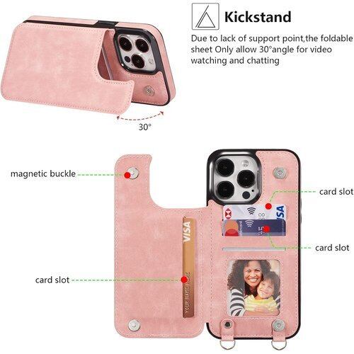 ZTOFERA iPhone 14 Pro Max 用ケース 背面 手帳型 カードケース アイフォン 14 Pro Max 財布型 背面カバー カード収納付き ショルダー クロスボディ ストラップ 上質PUレザー 人気 ケース 肩掛け 首掛け 斜めがけ 多機能 おしゃれ スマホケース 衝撃吸収 レンズ保護 落下保護 取り外し可能 長さ調整可能 軽量 女性 携帯カバー ローズゴールド 1666