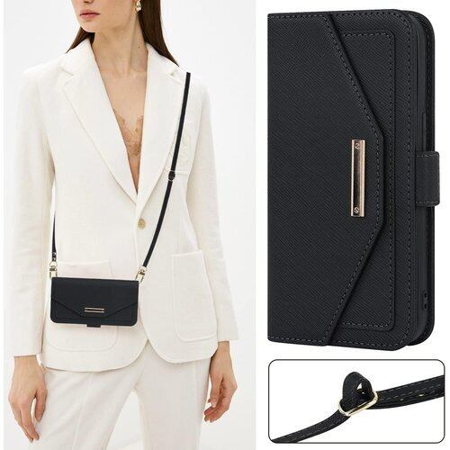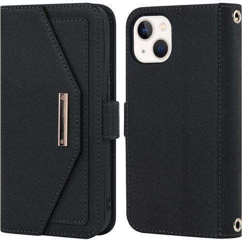 Pelanty for iPhone 14 手帳型ケース 縄掛け肩掛け斜めがけ ショルダー 合成皮革+TPU 携帯カバー 化粧鏡付き ストラップ付き マグネット iPhone14 財布型カバー ICカードポケット お札入れ小銭入れ大容量 収納ポケット スタンド機能 ファスナー付き アイフォン14 耐衝撃 肩縄付き-ブラック 1752