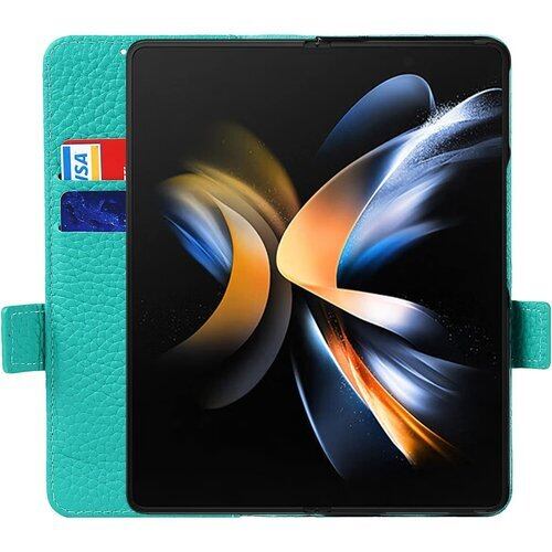 サムスン ギャラクシー Z フォールド4 ケース 本革 牛革 Samsung Galaxy Z Fold4 手帳型 ケース GalaxyZFold4 SCG16 / SC-55C 財布型 カバー 手帳式 本革 柔らかい 本皮 スプラットホール 内蔵マグネットカード収納 横置きスタンド機能 -グリーン