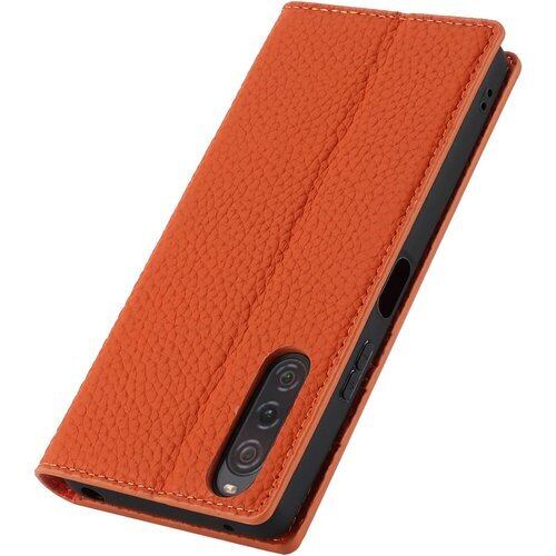 for Xperia 10 V ケース手帳型 SO-52D/ SOG11 ケース Pelanty 牛革製品 本革レザー Sony 10v 2023 財布型カバー Sony Xperia 10v カード収納 スタンド機能 内蔵マグネット 手作り柔らかい スマホケース ソニー エクスペリア 10 第5世代 携帯カバー ストラップ付 ヘッドフォンケーブル 耐衝撃 6色選択 オレンジ 1957
