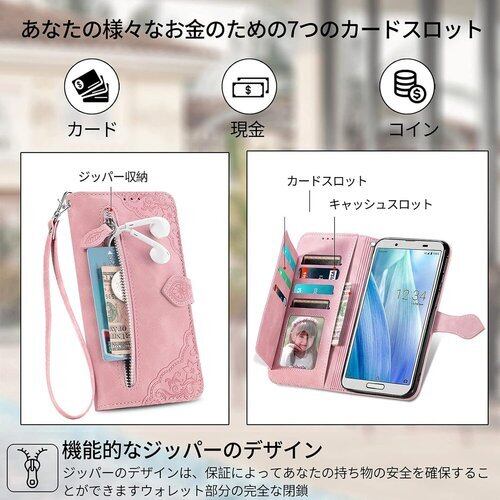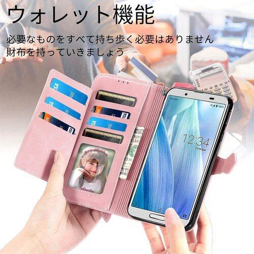 for AQUOS sense3 doo SH-02M/au SHV45 SHV48 Softbank/Android One S7/SH-M12/ AQUOS sense3 lite/AQUOS sense3 basic ケース 手帳型 ビジネスフリップノートレザーケースシンプルなレトロなファッション携帯ケース防水と汚れた携帯ケース多機能財布収納付きスタンド携帯シェルPUレザー保護カバー耐久性のある摩擦 ピンク 1976