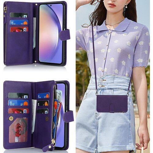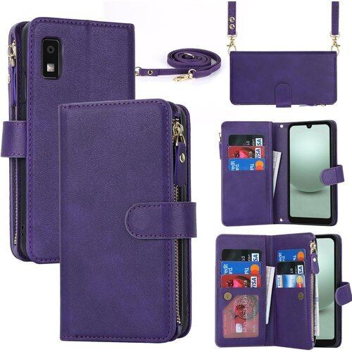 AQUOS wish3 ケース 手帳型 ショルダー ポシェット ストラップケース ウィッシュ3 スマホケース SH-53D doo SH-M25 モバイル A302SH SHM25 ワイモバイル SIMフリー 全対応 AQUOSwish3 手帳 アクオス シャープ SH53D カードケース 適用 case iCoverCase 斜め掛け カバー ショルダーケース パープル 2001