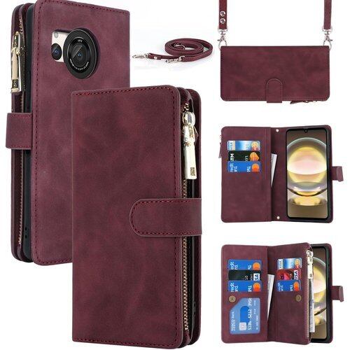 AQUOS R8 ケース 手帳型 ショルダー ストラップケース ポシェット カードケース AQUOSR8 SH-R80 モバイル SHR80 SH-52D doo SIMフリー 全対応 シャープ アクオス カバー SH52D アクオスR8 スマホケース 携帯カバー case ストラップ 適用 iCoverCase カード バッグ 肩がけ 斜め掛け ショルダーケース ワインレッド 2026