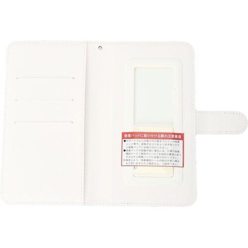各種スマートフォン対応のスライド式手帳型ケースです。サイズ約H155㎜・W75mm・厚み10mmまでの大きさの機種に対応できます。特殊吸着パッドにスマートフォンをしっかりと固定し、取り付けたスマートフォンを上にスライドさせると写真撮影可能です。吸着が悪い場合は製品のポケットに入っている緑色の吸着補助シールをスマートフォンに貼り付け、吸着パッドに接着させると密着強度が高くなります。