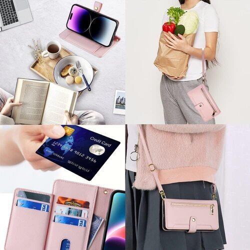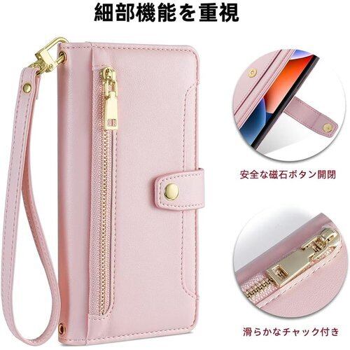 OPPO A73 ケース COKOVI OPPO A73カバー 対応 カード ホルダー付き 手帳型 財布型 ストラップと首掛け付き 耐衝撃 カード 御洒落 女性 可愛い おしゃれ カードホルダー付き 高級PUレザー サイドマグネット スタンド機能 ショルダーストラップ 肩掛け ストラップ チャックポケット付き ピンク 2088