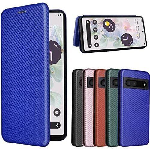 Pelanty Pixel 7 Pro ケース 手帳型 炭素繊維調 Google Pixel 7 Pro 携帯カバー pixel7 Pro 背面ケース 軽量 薄型 財布型 カード収納 グーグル ピクセル7pro スマホケース マグネット ストラップ付き 耐衝撃 全面保護-ブルー