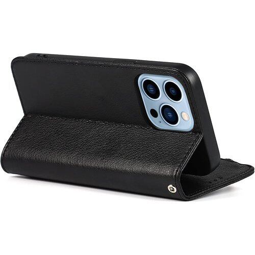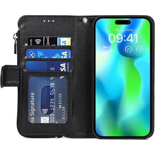 アイフォン 15 Pro Max ケース iPhone 15 Pro Max ケース 手帳型 財布型 手帳 背面 ICカード コインポケット ストラップ付き カード 収納 小銭入れ ファスナーポケット付き PUレザー 5色 ブラック