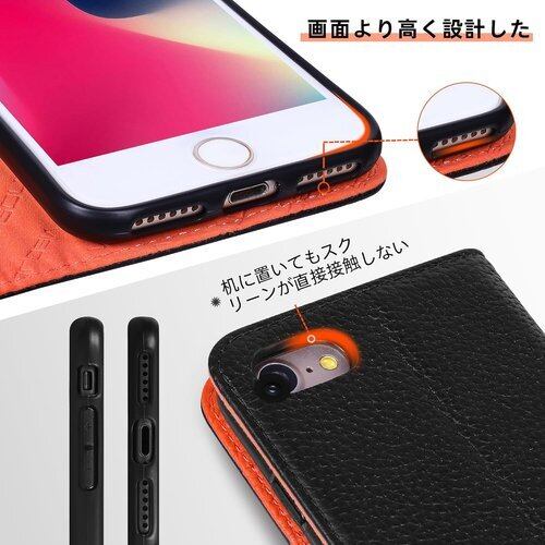 VISOUL iphoneSE 対応ケース 第3世代 iphoneSE第2世代 ケース 手帳型 本革 iphone7ケース 手帳型レザー 対衝撃 スマホケース 携帯カバー マグネット式 横置きスタンド オレンジ ライチ紋 2566