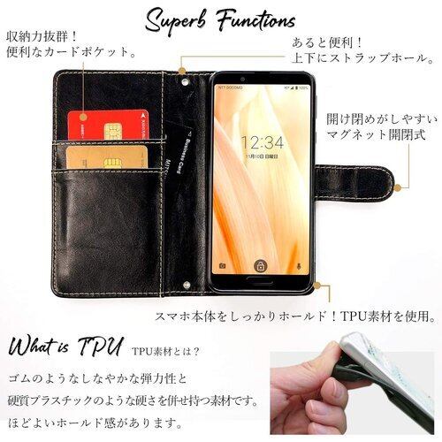 Xperia 10 Ⅵ SO-52E SOG14 A402SO XQ-ES44 専用 ケース カバー 手帳 大人のヴィンテージ手帳型 SO-52Eケース SO-52Eカバー SOG14ケース SOG14カバー so52e エクスペリア10Ⅵ PUレザー スマホケース スマホカバー 手帳型ケース 手帳型カバー ブラック 2575