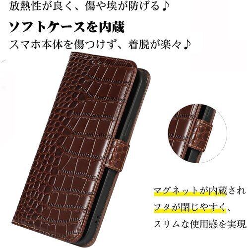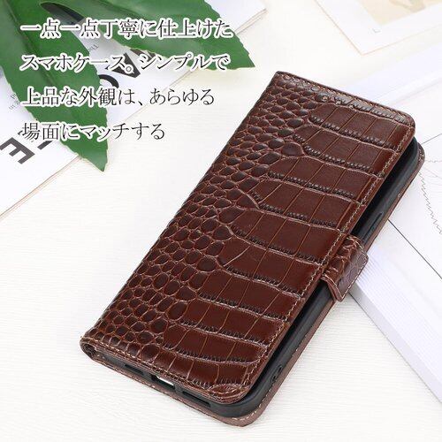 Arrows We2 ケース 手帳型 本革 ワニ柄 アローズ F-52E 牛革 財布型 豪華な本革製のスマートフォンケースです。クロコダイル柄の牛革を使用し、洗練されたデザインが特徴です。手帳型のデザインで、スマートフォンを保護しながら機能的に使えます。手帳部分の外側素材は本革で、ケースは耐久性があり、長い間美しい状態を眺めます。 牛革は革製品において一般的に使用される高品質な素材の一つです。 その特性としてしっかりとした強度があり、摩擦や外部からの影響に対しても耐久性があります。使用することで表面の風合いが変化し、独特の味わいをお楽しみいただけます。 クロコダイル柄:ケースの表面にはクロコダイル柄が施されています。この柄はエレガントで高級感があり、ケースに独自のスタイリッシュな外観を与えています。クロコダイル柄のデザインは洗練された印象を与え、持っているだけでファッショナブルな雰囲気を醸し出します。 これらの素材とデザインの組み合わせにより、スマートフォンケースは単体アクセサリーを超えて、ユーザーに高級感とスタイルを提供します。