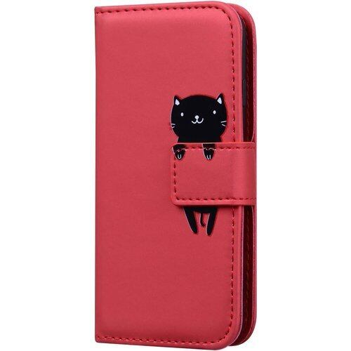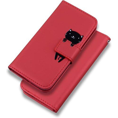 CASAFUNY Arrows we2 f-52e ケース 手帳型 お洒落 カバー FCNT arrows We2 FCG02 ケース 手帳型 耐衝撃 高級PUレザー アローズwe2ケース F-52E FCG02 カバー かわいい動物柄 携帯カバー アローズ F-52E ケース カードポケット付き f-52eケース 軽量 スマホケース カード収納 横置きスタンド機能 内蔵マグネット-赤猫 2698