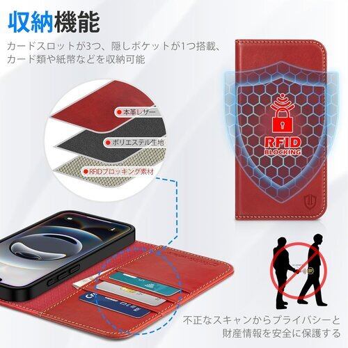 【カード収納・RFIDブロッキング技術採用】カードなどを入れるポケット3つがありますが、更にお札、紙幣も収納できるポケットも装備しますので、手ぶらで外出することができ、とても快適です。本iPhone16eケースはカードスロット&ポケットの裏地につける布はRFIDブロッキングライニングを採用しています。先進的なRFIDブロッキング技術を利用して、信号をブロックして、ICカードの情報や個人情報などを安全に守ります。信号がブロックするから、カードをケースに入れたまま反応しない場合は、カードを取り出してご利用ください。