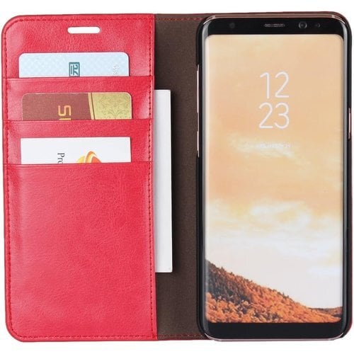 iCoverCase Galaxy S8 SC-02J/SCV36ケース Galaxy S8用ケース レッド 牛革 光沢加工 牛革 カバー 手帳型 携帯カバー カードポケット クレイジーホースのパターン スタンド機能 選べる4色 レッド 29