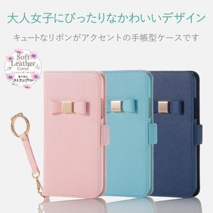 その他 機能 iPhone8 用ケース【手帳型 レザー サイドマグネット リボン×リボン ストラップ付き for Girl】