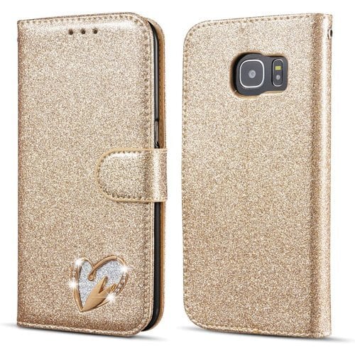 QLTYPRI ギャラクシー Galaxy S9 ケース 手帳型 PU キラキラ カード収納 横置き Qi充電 ストラップ付き 88