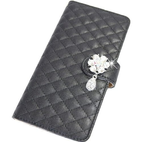 きらりと光るキレイでかわいラインストーンの花としずく ・ 手帳型ならではの保護性能 ・ 横置きスタンド機能 ・ カードポケット