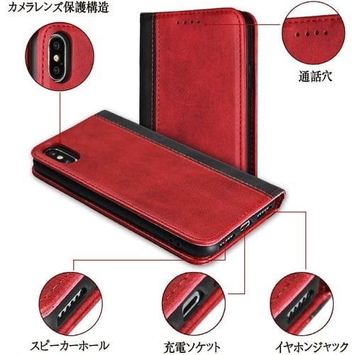 iPhone XS MAX スマホ ケース 2色組合せ 二色接合 手帳型 iPhoneXS MAX ケース CASE アイフォンXS MAX マックス ケースカバー XSmax iCoverCase 内蔵マグネット 携帯カバー カードポケット スタンド機能 シンプル カバー クラシック 落ち着いた色 軽量 便利 レトロ レッド 151